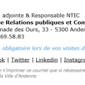 | www.andenne.be | Sites web et réseaux sociaux spécifiques (si existant) – lien cliquable – taille 9 – couleur noire – souligné |